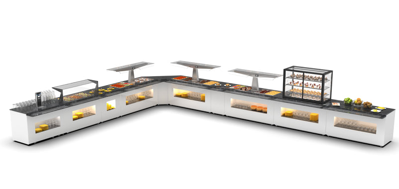 Il constitue la solution idéale pour les cantines scolaires, entreprises, hôpitaux, hôtels ou tout environnement où l’on souhaite combiner l’expérience du self-service avec un contrôle optimal et l’assistance du personnel.